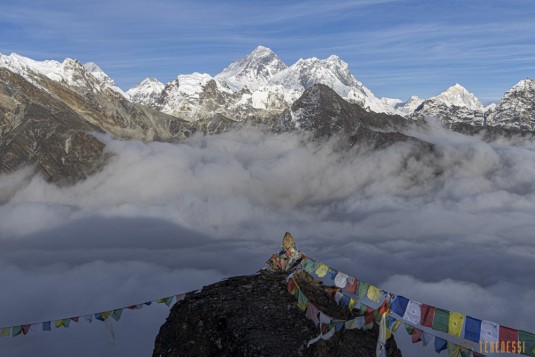 Khumbu - Everest : émerveillement perpétuel...Il y a peu, j'ai écrit :" Certains grincheux estiment que le Khumbu est envahi de touristes et que ce n'est plus comme avant. " Je voudrais juste vous donner l'envie d'y aller même si vous pensez comme eux. Oui, le tourisme s'est énormément développé dans les vallées du Khumbu. Je vous dirais bien : et alors ? ![]() ![]() Faut-il se priver de ce paysage si envoûtant parce que l’on estime que l'on est au-dessus de tout cela et que l'on ne veut pas participer au tourisme de masse ? Mais de quoi parle-t-on ? Pour rejoindre les points de vue sur l'Everest, parce que c'est de cela dont je parle, il faut faire de réels efforts. Il faut bien souvent 6 jours pour rejoindre le premier belvédère, celui du Gokyo Ri, afin de profiter d'un large panorama sur l'Everest et tous ses satellites environnants :
